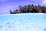 | サンゴの白化でハウスリーフの魅力は半減したものの、クルーズでは味わえない魅力はまだまだ残されている。逆にモルディブのハウスリーフでしか撮れない写真に挑戦。自然光がサンサンと降り注ぐインド洋の波打ち際にシャッターチャンスがある。 |
