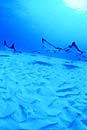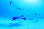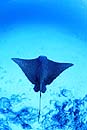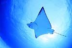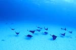 | 水深10mの真っ白な砂地にポツンと盛り上がった小さな根。その少し駆け上がった斜面にマダラトビエイ達は集まってくる。その数、30から100匹。ふつう外洋やドロップオフなどのダイナミックなエリアでの遭遇が多い被写体だが「イーグルレイシティ」は例外。多分世界的に見ても珍しいスポット。 |